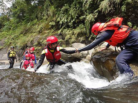 水不這麼深,但石頭多了些,為我們這次的溯溪之旅添加了一些小小的攀岩關卡。